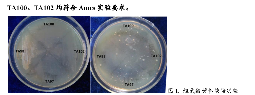 綜合以上結果,本實驗選用的鼠傷寒沙門氏組氨酸缺陷型菌株TA97、TA98、TA100、TA102均符合Ames實驗要求。