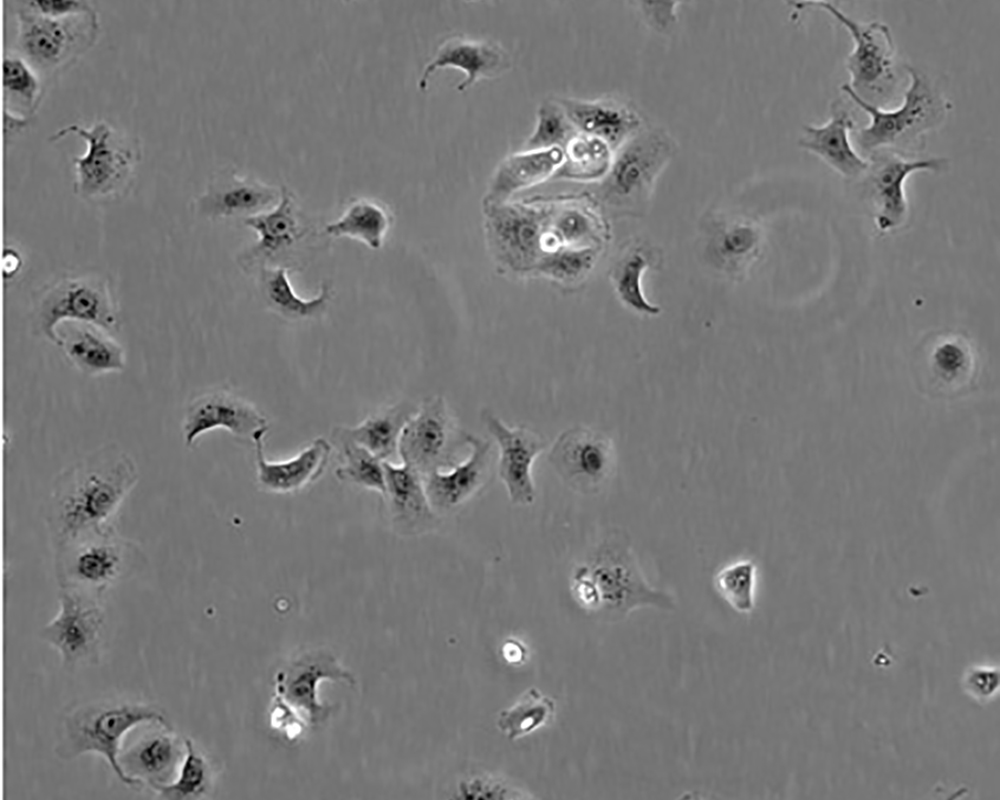 如果細(xì)胞密度達(dá)80%-90%,即可進(jìn)行傳代培養(yǎng)。1. 棄去培養(yǎng)上清,用不含鈣、鎂離子的PBS潤(rùn)洗細(xì)胞1-2次。2. 加2ml消化液(0.25%Trypsin-0.53mM EDTA)于培養(yǎng)瓶中,置于37℃培養(yǎng)箱中消化1-2分鐘,然后在顯微鏡下觀察細(xì)胞消化情況,若細(xì)胞大部分變圓并脫落,迅速拿回操作臺(tái),輕敲幾下培養(yǎng)瓶后加少量培養(yǎng)基終止消化。3. 按6-8ml/瓶補(bǔ)加培養(yǎng)基,輕輕打勻后吸出,在1000RPM條件下離心4分鐘,棄去上清液,補(bǔ)加1-2mL培養(yǎng)液后吹勻。4. 將細(xì)胞懸液按1:2到1:5的比例分到新的含8ml培養(yǎng)基的新皿中或者瓶中 |